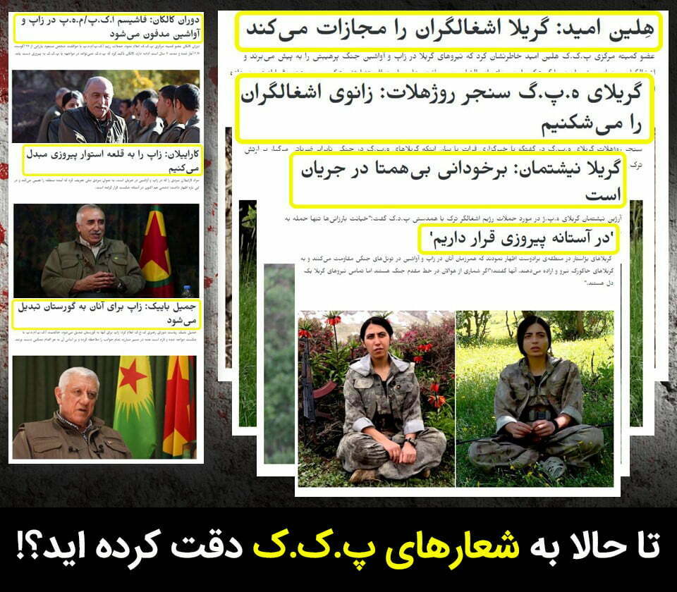 تا حالا به اراجیف پ.ک.ک دقت کرده اید؟! هر چه پیش بیاید، هر اتفاقی بیفتد، دشمن را شکست میدهیم، امسال را به سال پیروزی تبدیل میکنیم، فاشیسم را شکست میدهیم، دشمن را نابود میکنیم، خاورمیانه را تغییر میدهیم، مقاومت را توسعه میدهیم!! دریغ از یک دستاورد …